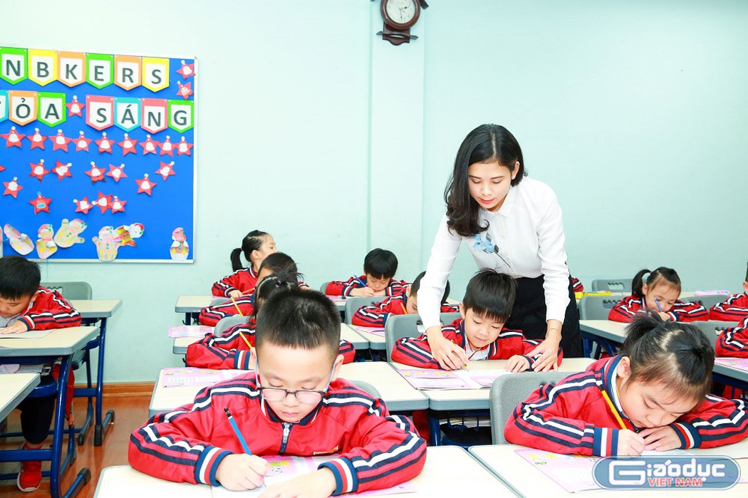| Cô Phạm Thị Bích Ngọc, giáo viên khối 1, trường Nguyễn Bỉnh Khiêm quận Cầu Giấy, Hà Nội (ảnh T.Trang). |