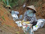 Khu vực trống còn lại hơn 900m2 bà Vân đào 3 hố để chôn lấp chất thải và để lộ thiên 6 đống chất thải với tổng trọng lượng là hơn 2.100 tấn. Qua kiểm tra, bà Dương Thị Vân không cung cấp được hồ sơ giấy tờ liên quan đến công tác chấp hành các quy định pháp luật về bảo vệ môi trường trong quá trình chôn, lấp, đổ chất thải.