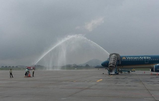 Hai chiếc xe cứu hỏa phun vòi rồng chào đón đoàn thể thao Việt Nam về nước, trong đó có một chiếc giá khoảng 1 triệu USD.