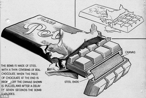 Thanh kẹo chết người này có lớp vỏ bọc màu đen, in dòng chữ vàng “Peter’s Chocolate”, giả nhãn hiệu socola được dùng ở bên trong phòng Nội các chiến tranh nơi các nhà lãnh đạo Anh ngồi bàn luận.