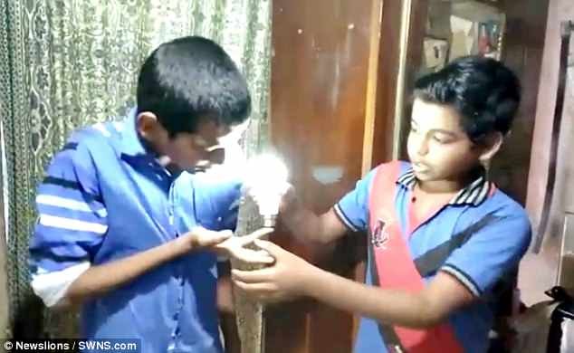 Cậu bé Ấn Độ dùng da trần phát điện làm sáng bóng đèn