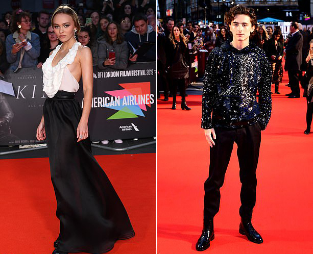 Người đẹp 20 tuổi Lily-Rose Depp và chàng người tình Timothee Chalamet đi quảng bá phim 'The King' ở London tối 3/10.