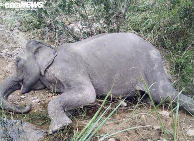 | Voi Yẵ Tao chết bên bờ suối sau nhiều ngày chán ăn, mệt mỏi. (Ảnh: Khuất Nguyên) |