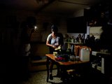Người dân La Habana cố gắng nấu ăn bằng đèn từ điện thoại sau sự cố mất điện hôm 18/10. (Ảnh: Reuters).