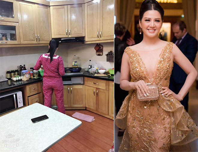 Trong ảnh, Hoa hậu Quý bà doanh nhân thế giới diện trang phục ở nhà giản dị, buộc tóc gọn gàng lúi húi nấu nướng. Kèm theo đó, tấm hình giỏ đựng siêu thị cho thấy Nữ hoàng Kim cương 2017 rất chỉn chu trong việc lựa chọn thực phẩm cho gia đình. Hình ảnh giản dị của Đinh Hiền Anh khiến người hâm mộ tò mò về cuộc sống đời thường của cô.