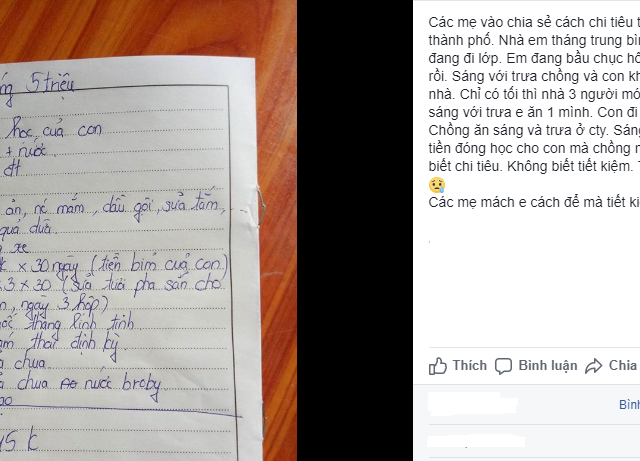 Bản nhật ký chi tiêu hàng tháng của một gia đình có 3 người, hiện đang chờ đợi thành viên thứ 4 của một bà mẹ dưới đây đã gây nhiều tranh cãi từ phía cộng đồng mạng.