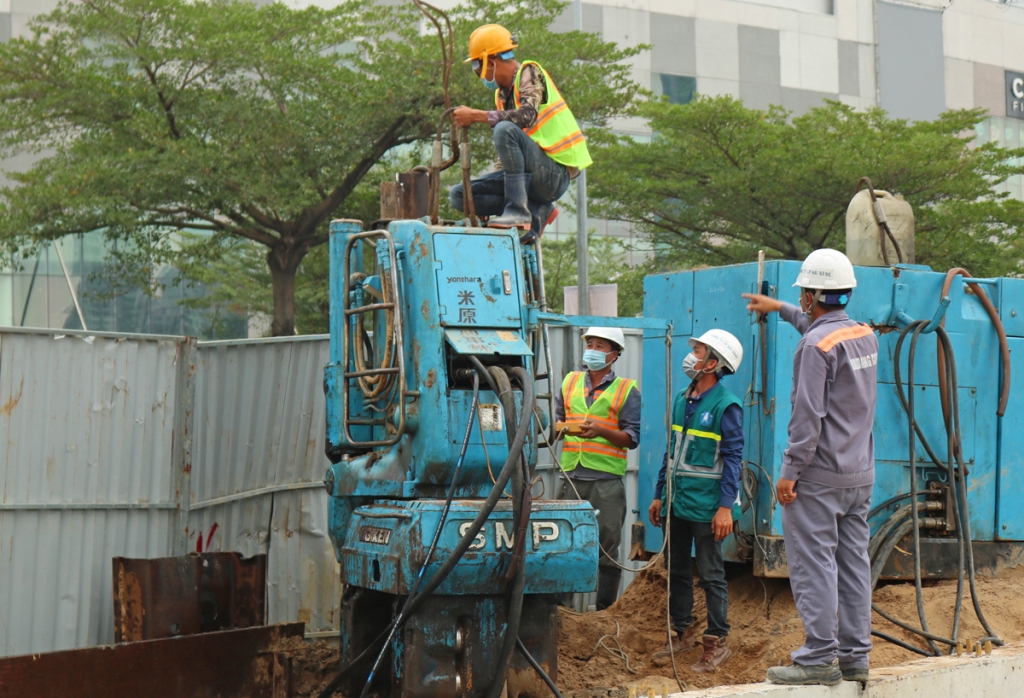 Những ngày đầu năm, việc thi công được tăng tốc với số lượng kỹ sư, công nhân gấp đôi dịp Tết. Trên công trường hiện có hơn chục loại máy móc như các thiết bị đào, cẩu, robot ép cừ... Công nhân tập trung đóng, ép cừ gia cố nền, lắp đặt ván khuôn... cho phần hầm hở phía trái công trình. Đoạn hầm kín đi qua nút giao cũng đang được xử lý nền móng do khu vực này địa chất yếu và phức tạp.