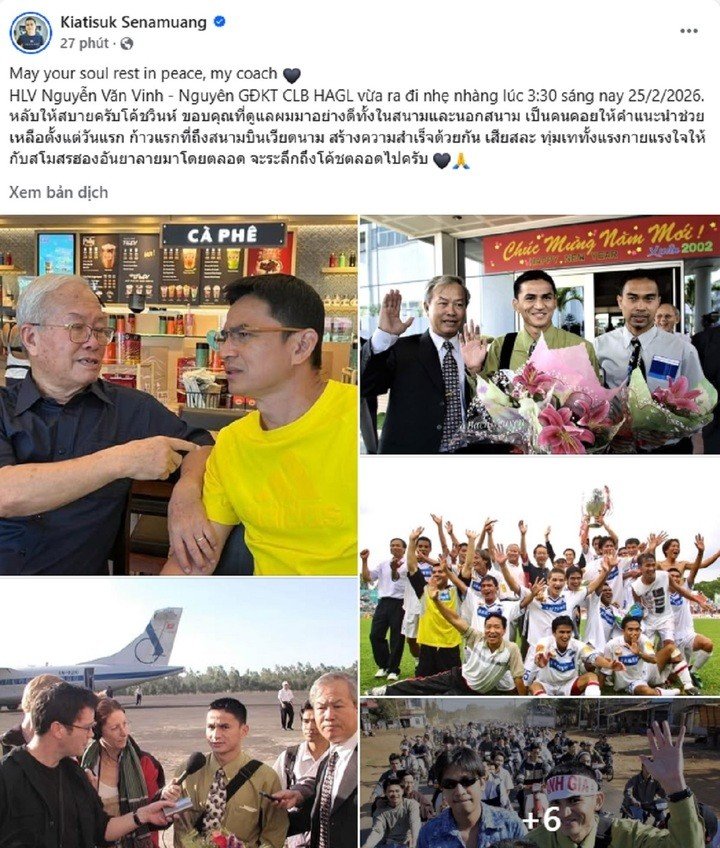 "HLV Nguyễn Văn Vinh - Nguyên Giám đốc kỹ thuật CLB HAGL vừa ra đi nhẹ nhàng lúc 3h30 sáng nay 25/2/2026" , Kiatisak Senamuang - cựu cầu thủ, huấn luyện viên Hoàng Anh Gia Lai - thông tin trên mạng xã hội. "Zico Thái" gắn bó với ông Nguyễn Thành Vinh từ ngày sang Việt Nam đầu quân cho đội bóng phố núi.