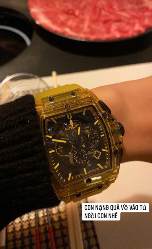 Chiếc đồng hồ tiền tỷ mà Mai Phương Thúy mới tậu là Hublot Yellow Sapphire. Được biết, Hublot Yellow Sapphire có giá gốc từ 1,7 đến 2 tỷ đồng và Mai Phương Thúy đã phải đặt trước một thời gian mới "rước" được chiếc đồng hồ này về.