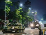 Phát hiện các đối tượng có hành vi gây nguy hiểm cho đội hình diễu binh, diễu hành và Nhân dân; tổ công tác của Công an thành phố đang làm nhiệm vụ tại chốt bảo vệ khu vực trước số nhà 336A Nghi Tàm ra hiệu lệnh dừng xe, ngăn chặn các đối tượng.