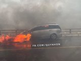 Phát hiện sự việc, nữ lái xe đã dừng khẩn cấp rồi nhanh chóng thoát ra ngoài an toàn, hô hoán dập lửa. Ngọn lửa sau đó bốc lên nhanh chóng bao trùm chiếc xe.