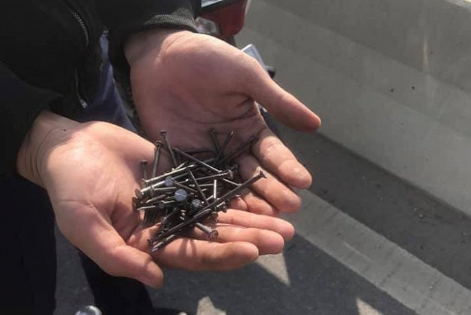 Gần nửa tháng nay, tình trạng rải đinh xuất hiện liên tục trên mặt cầu vượt biển dài nhất Việt Nam Tân Vũ - Lạch Huyện. Mật độ đinh được rải dày, trung bình khoảng 10m mặt đường có gần 20 đinh loại dài khoảng 5 phân.