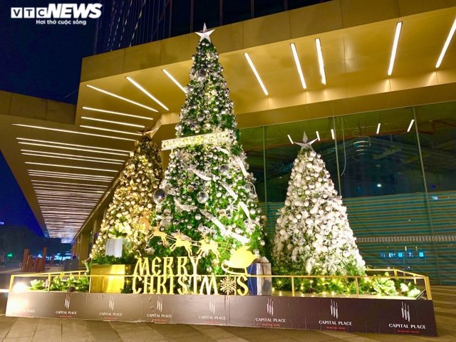 Những cây thông cao cả chục mét và rất nhiều tiểu tiết cầu kỳ được dựng phía trước các trung tâm thương mại khiến không khí Giáng Sinh trở nên rộn ràng.
