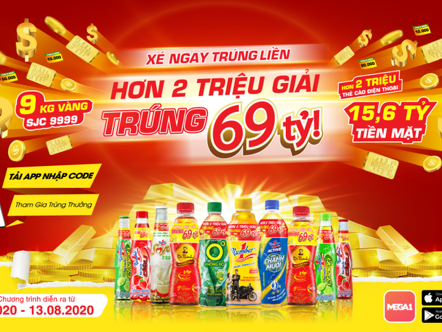 Từ ngày 15/05 đến 13/08/2020, khi sử dụng các sản phẩm như Trà Thanh nhiệt Dr Thanh; Trà Xanh Không Độ; Nước tăng lực Number 1,… khách hàng sẽ đươc tham gia vào chương trình “Xé ngay trúng liền - Hơn 2 triệu giải - Trúng 69 tỷ” và có cơ hội dễ dàng nhận được hàng triệu giải thưởng có tổng trị giá lên tới 69 tỷ đồng.