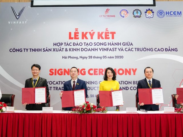 Ngày 28/5/2020, Công ty TNHH Kinh doanh Thương mại và Dịch vụ VinFast đã ký kết biên bản ghi nhớ hợp tác với 5 trường Cao đẳng, nhằm triển khai mô hình liên kết đào tạo trình độ Cao đẳng chuyên ngành Cơ điện tử và Kỹ thuật ô tô trên toàn quốc. Với chương trình đào tạo song hành, học viên sẽ được cấp bằng Kỹ sư thực hành của trường và chứng chỉ Kỹ thuật viên của VinFast, đồng thời được VinFast hỗ trợ chi phí đào tạo và đảm bảo việc làm sau tốt nghiệp.