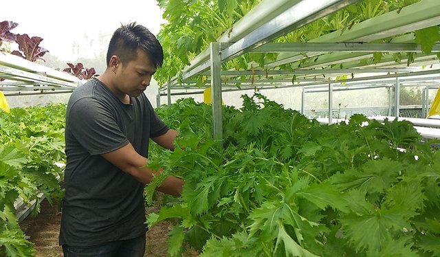 Đinh Quốc Tuấn (26 tuổi, ở P.Thống Nhất, TP.Pleiku, Gia Lai) mạnh dạn đầu tư mô hình trồng rau thủy canh đã thu lợi nhuận cao.