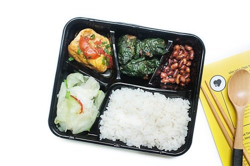 Khay cơm đủ dinh dưỡng, do các bà nội trợ nấu tại nhà được giao đến tay dân công sở Hà Nội, với giá từ 35.000 đồng một suất.