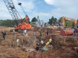 Hàng trăm người cùng các phương tiện đã được triển khai để cứu nạn nhưng miệng lỗ trụ đóng bêtông quá nhỏ. Lực lượng cứu nạn không thể thả dây để leo xuống nên việc mở rộng hố mất nhiều thời gian, gây khó khăn cho việc cứu nạn.