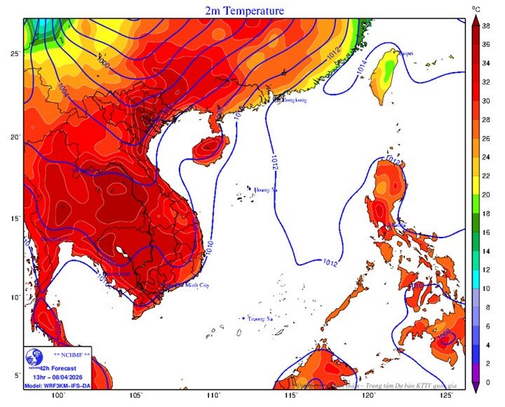 Hôm qua (7/4), Tây Bắc Bộ nắng nóng gay gắt, có nơi đặc biệt gay gắt với nhiệt độ cao nhất ngày phổ biến 37-39°C, có nơi trên 40°C như các trạm: Phù Yên (Sơn La) và Mai Châu (Phú Thọ) 40,2°C, độ ẩm tương đối thấp nhất 35-40%.