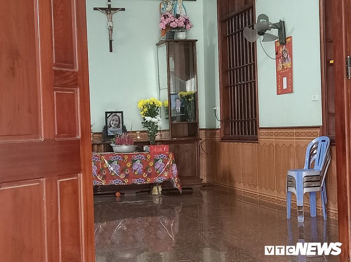 Bên trong nhà, mẹ và chị gái Nhung đang ngồi bần thần nhìn về phía bàn thờ đặt di ảnh Nhung, cô gái 19 tuổi có nụ cười tươi tắn.