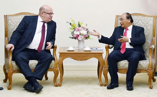 Thủ tướng Nguyễn Xuân Phúc tiếp Bộ trưởng Kinh tế và Năng lượng Cộng hòa Liên bang Đức Peter Altmaier. Ảnh: TTXVN