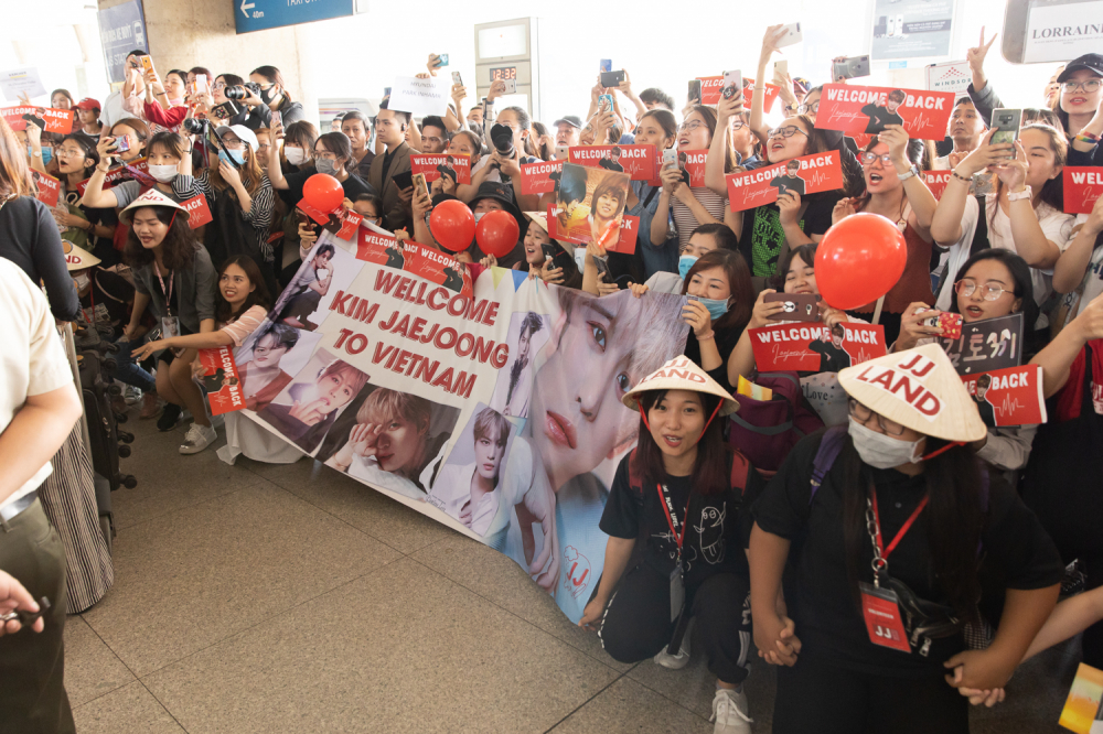 | Fan có mặt từ sớm, thậm chí nhiều fan hâm mộ từ những tỉnh thành khác cũng đến để xếp hàng ngay ngắn chờ chuyến bay của Kim Jae Joong hạ cánh. |
