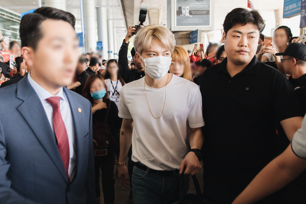 | Đeo khẩu trang nhưng Kim Jae Joong vẫn thu hút sự chú ý nhờ ngoại hình nổi bật. Không chỉ fan mà các hành khách ở sân bay cũng chú ý đến anh. |