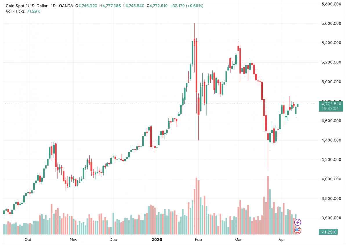 Tính đến cuối phiên hôm qua (giờ Mỹ), giá vàng giao ngay giảm 0,3%, chốt phiên ở mức 4.734,50USD/oz, trong khi giá vàng tương lai giảm 0,4%, xuống 4.767,40 USD/oz.