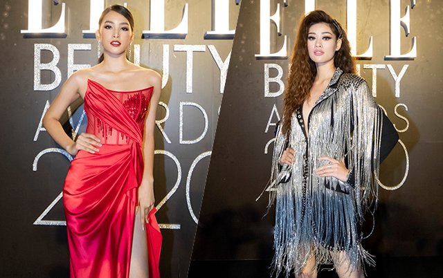 Tối 26/12, hoa hậu Tiểu Vy chọn váy xẻ cao gợi cảm, trong khi Khánh Vân diện váy đính tua rua kim loại cá tính tham gia event.