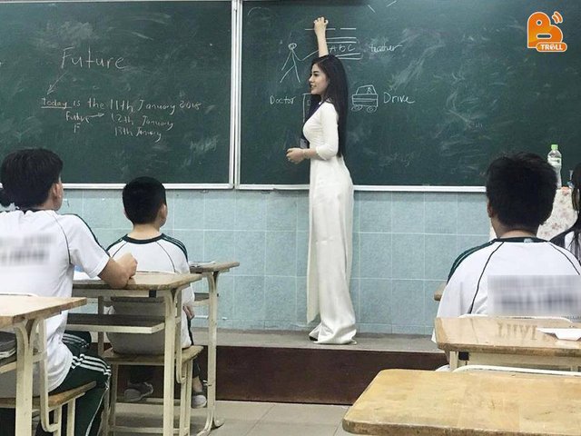 Sau Âu Hà My - nữ giảng viên nóng bỏng của ĐH Quốc gia Hà Nội - dân tình lại đứng ngồi không yên khi bắt gặp hình ảnh của cô giáo khác cũng xinh đẹp và quyến rũ không kém. Trong bức ảnh đang lan truyền và gây sốt trên MXH, người xem bị ấn tượng với một nữ giáo viên trẻ có vóc dáng cao ráo, gương mặt góc nghiêng xinh xắn. Cô diện bộ áo dài trắng thướt tha đang say sưa giảng bài trong lớp học.