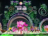 Gian hàng trưng bày hàng trăm chậu hoa nghệ sen “cháy hàng” trong những ngày diễn ra festival. (Ảnh: Nguyễn Liến)