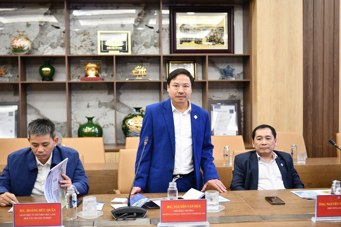 Tại buổi làm việc, lãnh đạo JinYang Electronics Vina và đoàn công tác trường Cao đẳng nghề công nghiệp Hà Nội trao đổi về nhu cầu tuyển dụng trong năm 2026 và thống nhất để trường đưa sinh viên về thực tập tại công ty.