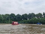 Một số đoạn trên quốc lộ 6 qua Hà Nội bị hư hỏng và ngập nước sau bão số 3 |