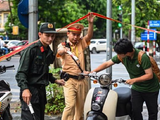 Lực lượng CSGT Hà Nội xử lý người vi phạm.