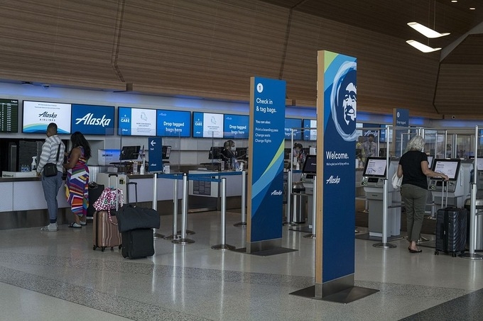 Một quầy làm thủ tục của Alaska Airlines. Ảnh: Bloomberg. |