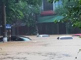 Ô tô trôi lềnh bềnh trên phố sau cơn mưa lớn |