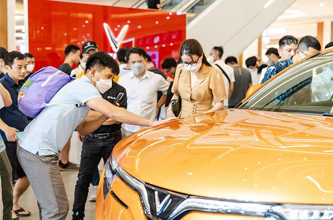 Không chỉ khách tới thử xe, sự xuất hiện của những chiếc VF 8 còn thu hút rất đông người đi đường. Không ít người thậm chí đã “đổi lộ trình” đang di chuyển của mình để có cơ hội được ngồi lên mẫu xe nổi tiếng.