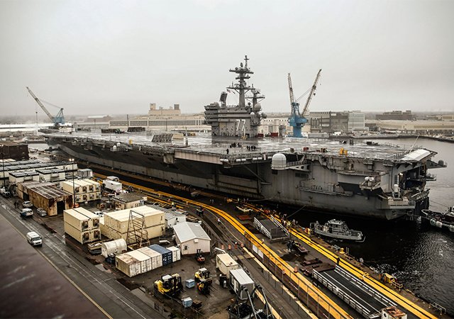 Toàn bộ 6 trên 10 tàu sân bay trong biên chế hải quân Mỹ ở Bờ Đông đều đang phải nằm cảng để sửa chữa, tiếp liệu hoặc đại tu.
