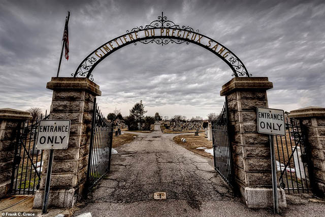 Lối vào nghĩa trang máu ở Woonsocket, Rhode Island. Vào năm 1955, một cơn bão đã gây ra một trận lũ quét tại đây, cuốn đi 50 chiếc quan tài và xác chết xuống dòng nước chảy xiết. Nghĩa trang này nổi tiếng là nơi xuất hiện nhiều quả cầu bí ẩn lơ lửng kèm theo những tiếng động lạ.