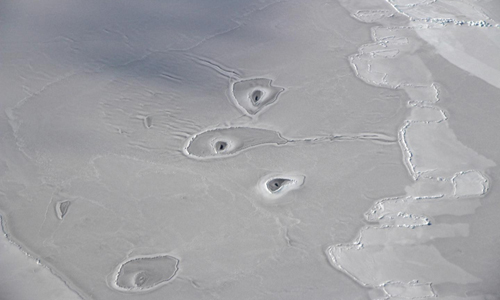 Nhà khoa học John Sonntag tại NASA chụp lại những chiếc hố kỳ lạ xuất hiện ở lớp băng trên biển Beaufort thuộc Bắc Băng Dương trong chuyến bay định kỳ hôm 14/4. Đây có vẻ là lần đầu tiên hình ảnh về loại hố băng này được ghi lại. Các nhà khoa học chưa xác định được chúng bắt nguồn từ đâu hay hình thành như thế nào.