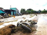 Người dân xã Tuy Phong dọn dẹp bùn đất, nhà cửa sau vụ vỡ hồ chứa nước.