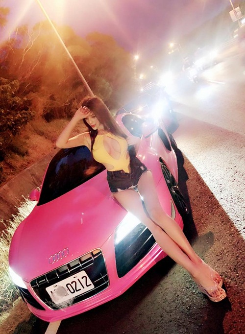 Tuy nhiên, trong số các siêu xe đó có một chiếc xe vô cùng thú vị, gây được sự chú ý rất lớn, đó chính là chiếc xe Audi R8 màu hồng nổi bật của hot girl nóng bỏng có tên Tử Hàm Joanna.