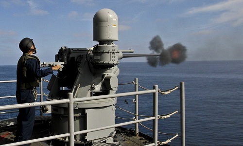 | Binh sĩ trên tàu USS Boxer của Mỹ khai hỏa trong một cuộc diễn tập bắn đạn thật hồi năm 2018. Ảnh: US Navy. |