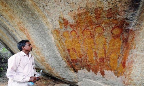 Các nhà khoa học phát hiện nhiều bức tranh hang động tại Ấn Độ niên đại 10.000 năm có những hình vẽ giống người ngoài hành tinh và UFO.