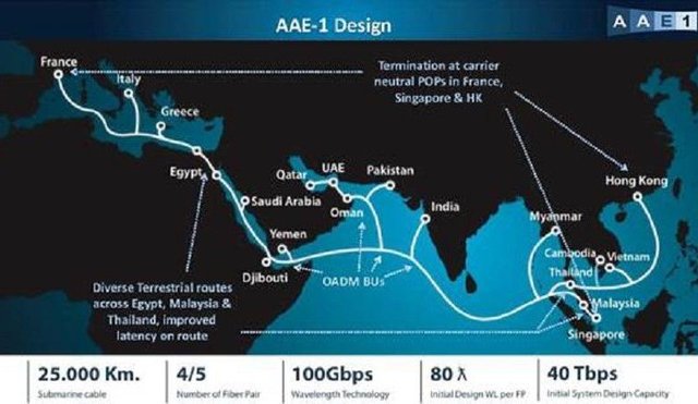 Tuyến cáp biển quốc tế AAE-1 (Asia-Africa-Europe 1) đã bị sự cố lúc 7h19 ngày 4-9 trên nhánh S1H, gây ảnh hưởng đến quá trình kết nối Internet từ Việt Nam đi Singapore.