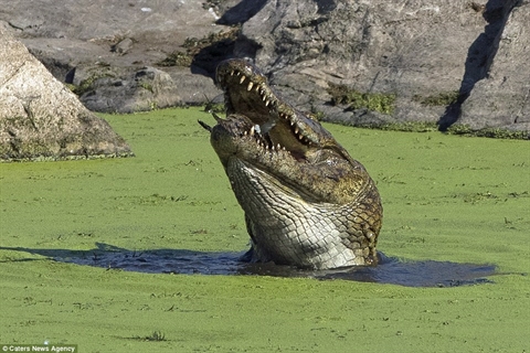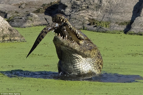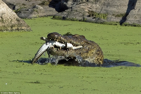 Những hình ảnh ghi lại tại Công viên quốc gia Kruger, Nam Phi. Các nhà khoa học cho biết cá sấu thông thường không ăn thịt đồng loại nhưng nếu tại thời điểm thiếu con mồi hay cạnh tranh lãnh thổ, điều này sẽ xảy ra.