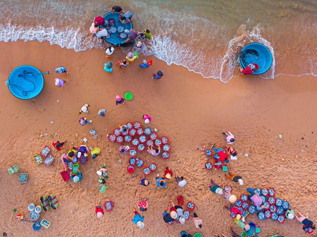 Chợ nằm sát bờ biển dọc khắp tỉnh Phú Yên, họp nhanh từ khoảng 4h30 đến 5h30 sáng (tùy giờ tàu vào). Giá cá cơm ở đây chỉ khoảng 12.000-15.000 đồng/kg. Trong khi đó, chỉ vài tiếng sau chúng có thể được bán lại tại các chợ dân sinh với giá khoảng 200.000 đồng/kg.
