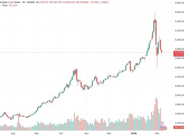 Tính đến 8h30 sáng nay (6/2), giá vàng giao ngay giảm 51,795 USD, giao dịch ở 4.728,880 USD/oz; giá vàng tương lai tháng 4 giảm 140,99 USD xuống 4.748,51 USD/oz.