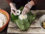 Cuối cùng là gói bánh vào trong những tấm lá chuối khô và cho vào hấp cách thủy trong vòng 1 giờ.