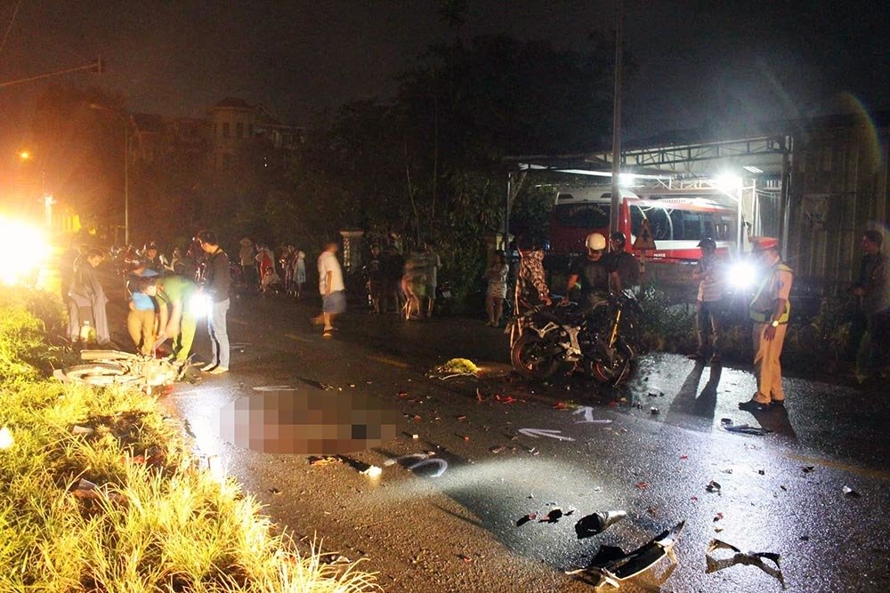 Chạy ngược chiều nhau trong thời tiết mưa gió tại Bình Dương, 2 xe máy tông mạnh, trực diện khiến 2 người tử vong.
